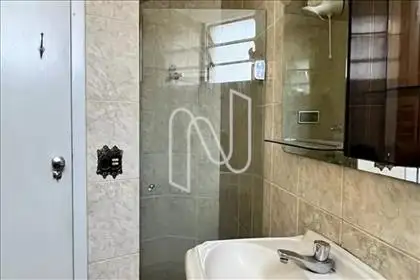 - Banho social e suíte com bancada de granito, box, espelho, piso de cerâmica